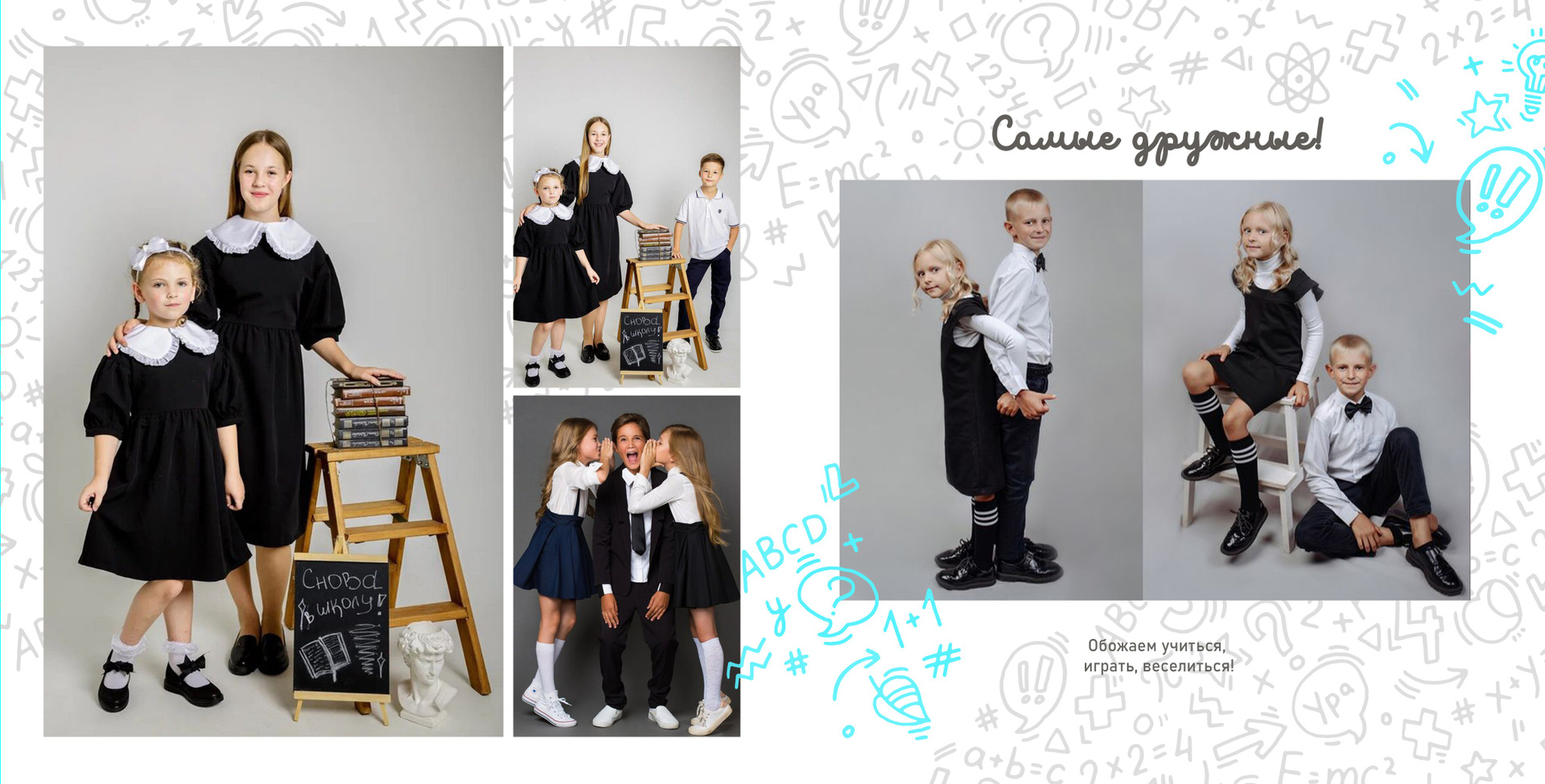 ❤ 2 разворот — общая фотографии + фотографии с лучшими друзьями, выбирают родители