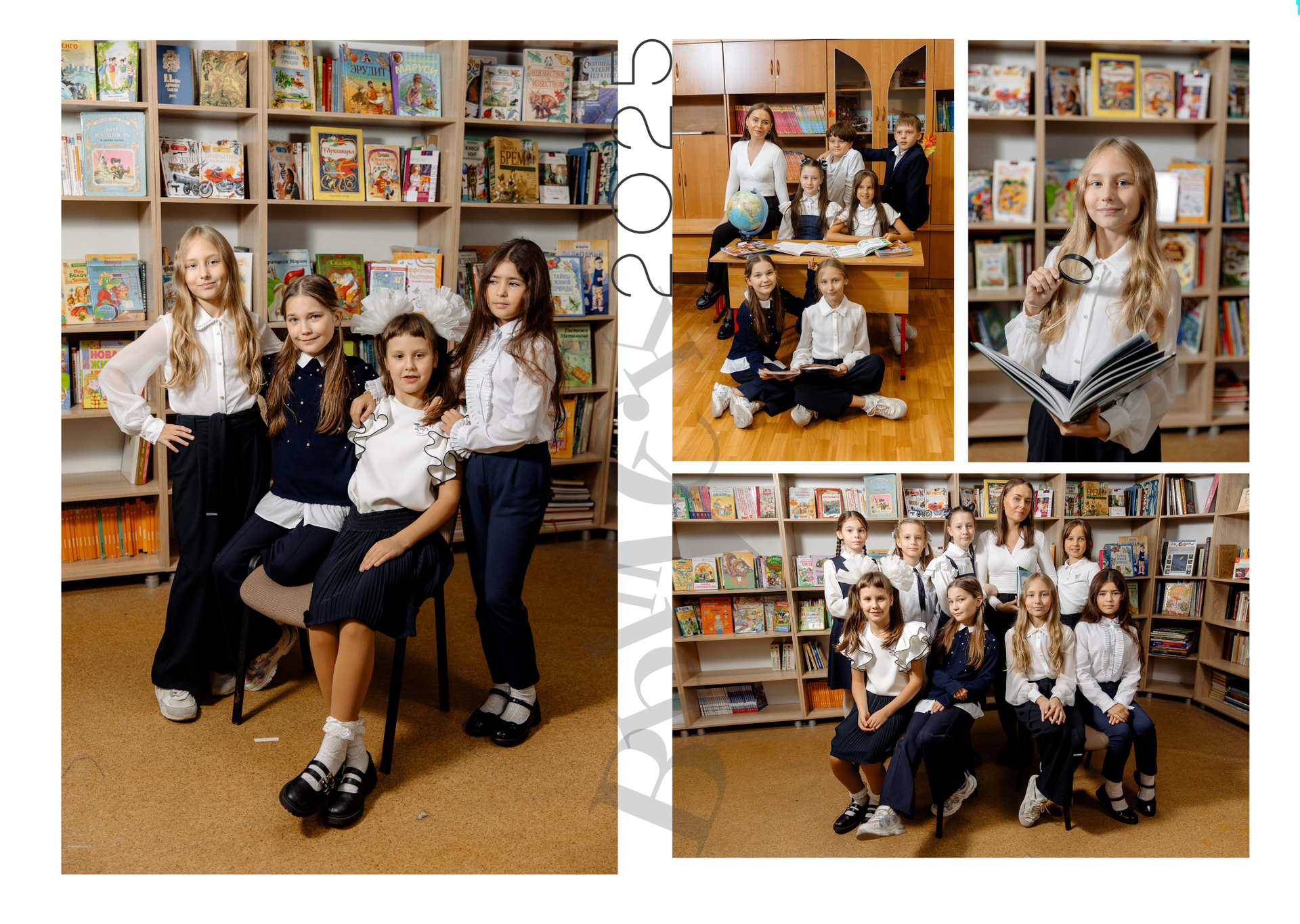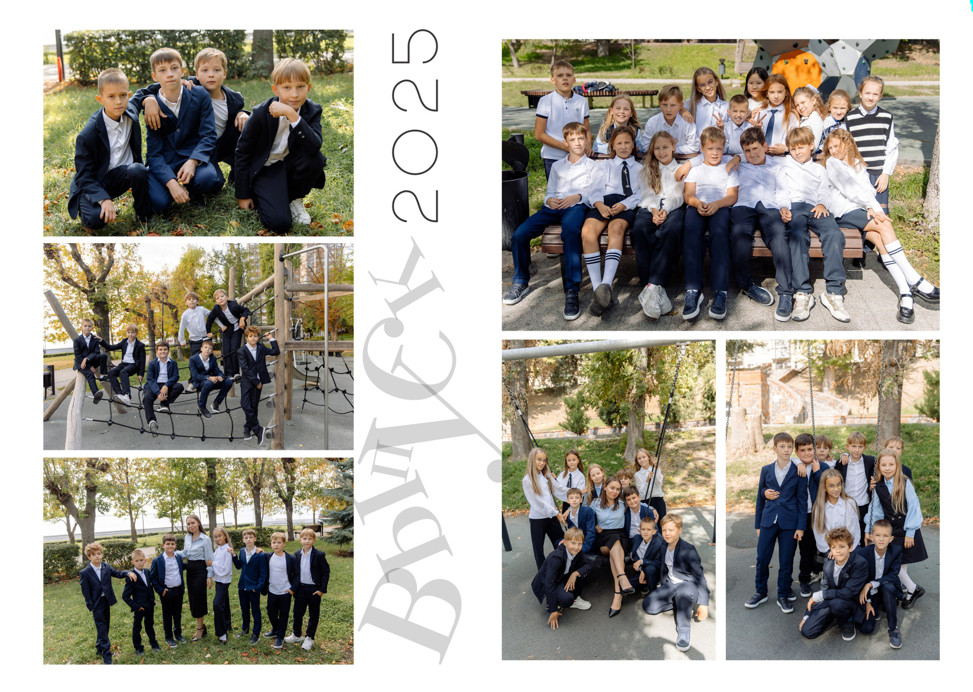 ❤ около 10-20 фотографий с Вашим ребёнком (зависит от желания ребенка быть в кадре с одноклассниками)