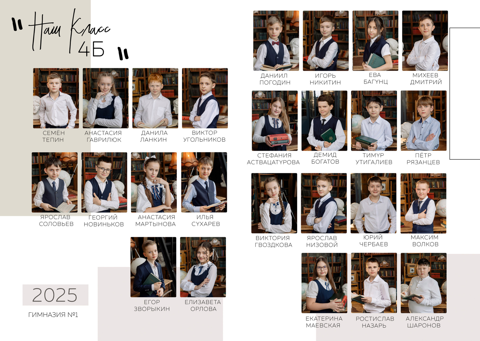 ❤ 1 разворот с лучшими портретами (выбирают родители)